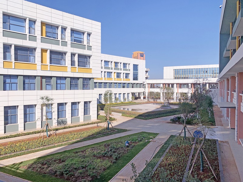 西沖小學(xué)項(xiàng)目位于昆明空港經(jīng)濟(jì)區(qū)大板橋鎮(zhèn)西沖口村,項(xiàng)目規(guī)劃用地面積為66950.75平方米,總建筑面積為66273.65平方米,新建地上建筑面積36428.30平方米,共10棟單體建筑,其中1、3、4棟為4層,2、6、7、8、9棟為2層,5棟7層,10棟1層。目前,1棟教學(xué)樓、3棟綜合樓、5棟教師辦公配套用房以及附屬室外工程已順利交付使用,剩余棟號(hào)均已封頂并完成所有二次結(jié)構(gòu),室內(nèi)裝修完成90%。改擴(kuò)建后的西沖小學(xué),將從原來(lái)的24班辦學(xué)規(guī)模增加至72班。