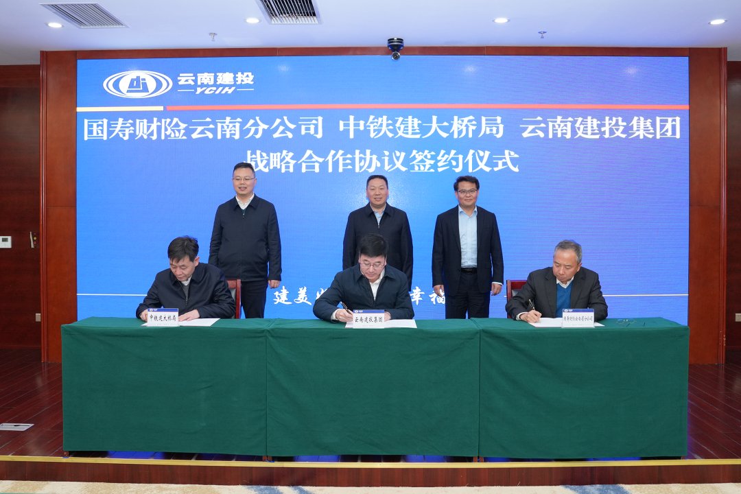 1月2日,集團與中國人壽財產保險云南省分公司、中國鐵建大橋工程局集團簽訂戰略合作協議。集團公司黨委書記、董事長陳祖軍,中國人壽財險云南省分公司黨委書記、總經理劉寅,中國鐵建大橋工程局集團黨委委員、副總經理徐青旺出席簽約儀式。