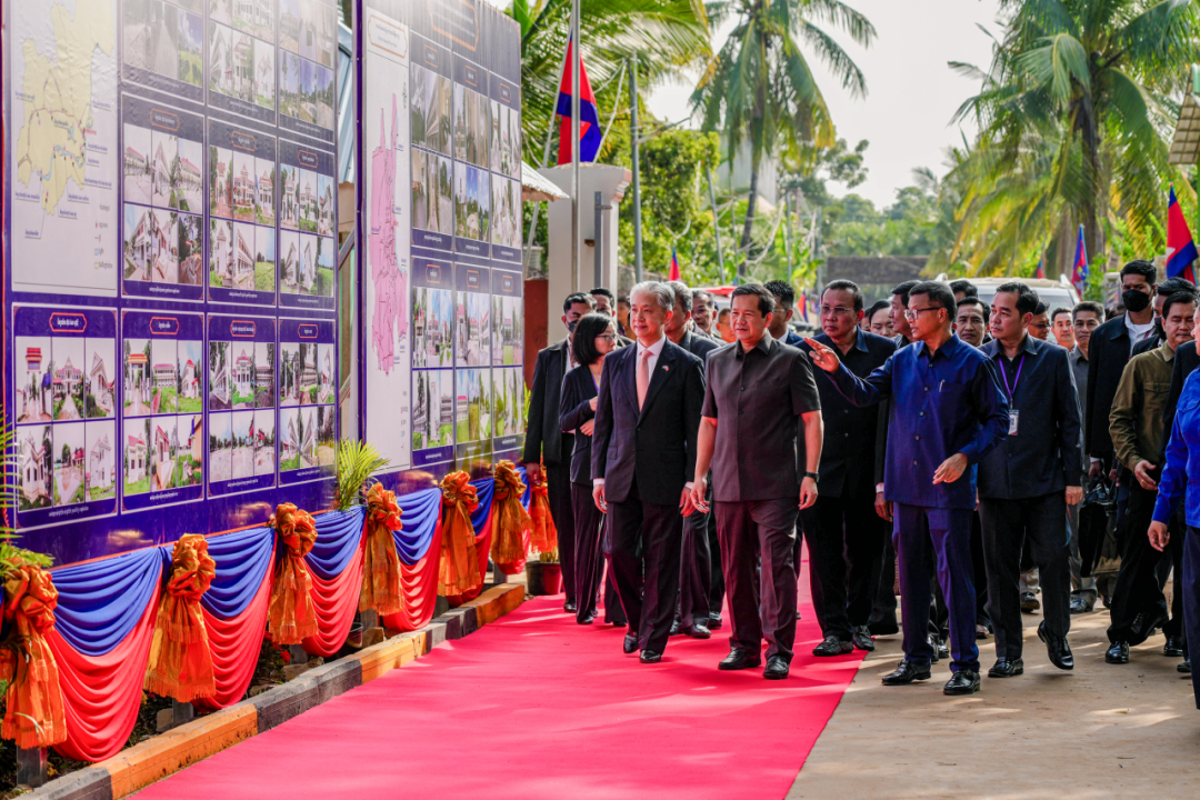 10月26日,集團承建的中國援柬埔寨教育環(huán)境與設(shè)施改善項目慶祝儀式在柬磅湛省賓起康中學(xué)舉行。柬埔寨首相洪瑪奈、中國駐柬埔寨大使汪文斌共同出席并致辭。奈薩文、孫占托、韓春納洛、賽桑奧四位副首相及柬多位內(nèi)閣成員和各界代表逾千人參加,集團柬埔寨區(qū)域經(jīng)理部受邀參加。