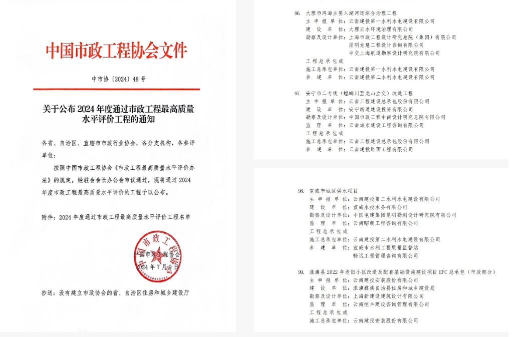 中國市政工程最高質(zhì)量水平評(píng)價(jià)工程名單