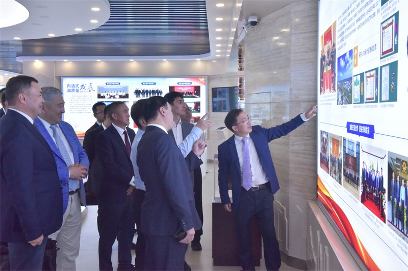 國際工程部、物流公司、總承包公司分別介紹了各自海外業務開展情況,并與哈薩克斯坦公路股份公司、中鐵亞歐公司就具體業務工作進行深入探討。劉金榮帶領客人參觀集團歷史文化展廳、“云上營家”數字展廳,了解集團發展歷程、綜合實力、榮譽成就等情況。