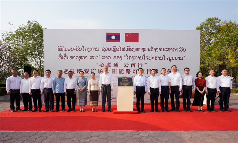王予波與老撾人革黨中央書記處書記、萬象市委書記、市人民議會主席阿努帕·杜納隆一同為援塔鑾廣場亮化項目揭幕,與老撾萬象市副市長西里臘通辛·通蓬共同見證絲路友好書屋項目移交。中國駐老撾大使館臨時代辦王暢,云南省人民政府外事辦公室主任、省人民對外友好協(xié)會會長張士金、發(fā)改委主任王正英、交通廳廳長夏俊松、商務(wù)廳廳長楊沐,中國駐老撾大使館經(jīng)濟商務(wù)處參贊趙文宇,老撾萬象市能礦廳廳長神坎·吞瑪翁沙等老方代表及項目實施方和受贈方代表一同出席活動。