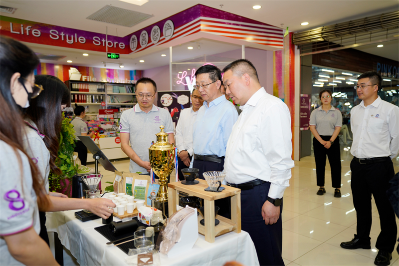 在萬象國際商業(yè)旅游中心,王予波查看了購物中心衣、食、住、行、娛各版塊業(yè)態(tài)布局,肯定項目運營管理取得的成效。他說,中國企業(yè)“走出去”不容易,“穩(wěn)住腳”更艱難。多年來,萬象中心在提升老撾城市風(fēng)貌業(yè)態(tài)、完善城市功能配套、促進當(dāng)?shù)芈糜伟l(fā)展、拉動民眾就業(yè)創(chuàng)業(yè)等方面發(fā)揮了重要作用,展現(xiàn)了中國企業(yè)的良好形象。云南建投集團和萬象中心要不斷強化內(nèi)部管理、加強風(fēng)險管控,確保中國企業(yè)“走出去、穩(wěn)下來、能發(fā)展”,行穩(wěn)致遠。