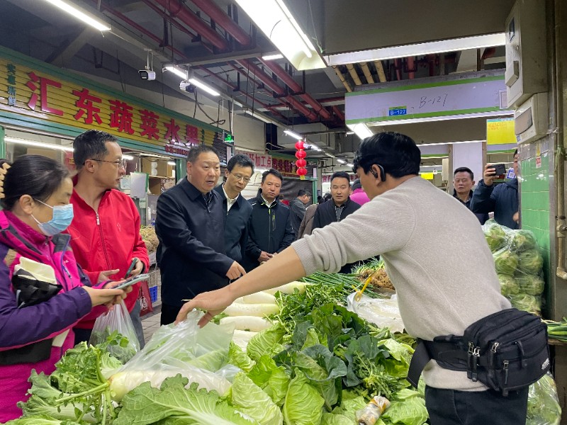 2月14日,集團公司黨委書記、董事長陳祖軍到建材科技公司五里多農博廣場、五里多大商匯菜市調研市場保供穩價、運營管理情況,貫徹落實2月9日省委書記王寧到集團篆新農貿市場調研節日市場供應情況時的指示精神,看望慰問春節期間堅守崗位的干部職工。