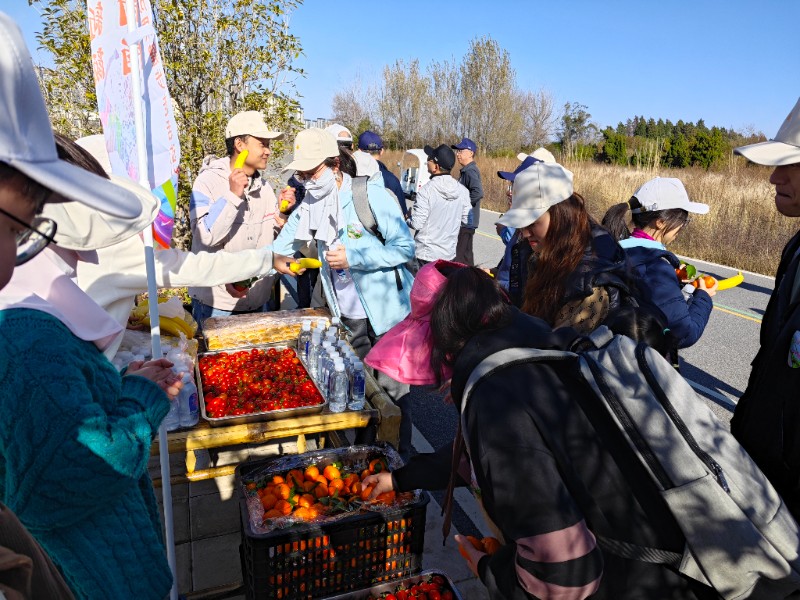 活動(dòng)全程7.5公里,從融創(chuàng)三月廣場出發(fā),沿生態(tài)綠道,實(shí)地觀摩昆明市生態(tài)文明建設(shè)成果,沿途環(huán)境優(yōu)美、空氣清新、風(fēng)景如畫。出發(fā)前,每一位參加人員都配備補(bǔ)給包,包內(nèi)放置了水和巧克力以及雨衣以備不時(shí)之需,沿途還分別設(shè)置了4個(gè)補(bǔ)給站,除提供礦泉水外,還提供熱水和水果美食。有了補(bǔ)給點(diǎn)熱情周到的服務(wù)和充分的保障,活動(dòng)參與者們可以放心大膽地把腳步交給大自然,行一程山水,賞一路風(fēng)光。歷時(shí)1個(gè)小時(shí),當(dāng)完成第4個(gè)點(diǎn)的打卡后,大家已是汗流浹背,但在4號(hào)補(bǔ)給點(diǎn)補(bǔ)充了能量,相互分享了美食后,大家又整裝待發(fā)朝著終點(diǎn)進(jìn)發(fā)。