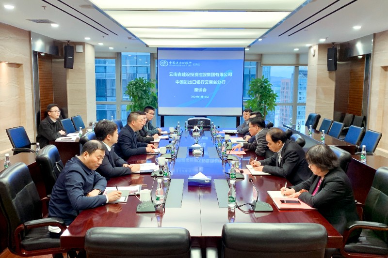 1月18日,集團公司黨委書記、董事長陳祖軍,黨委委員、副總經理仝德剛一行赴進出口銀行云南省分行,與進出口銀行云南省分行黨委書記、行長陳昕,副行長苗澤林交流座談。