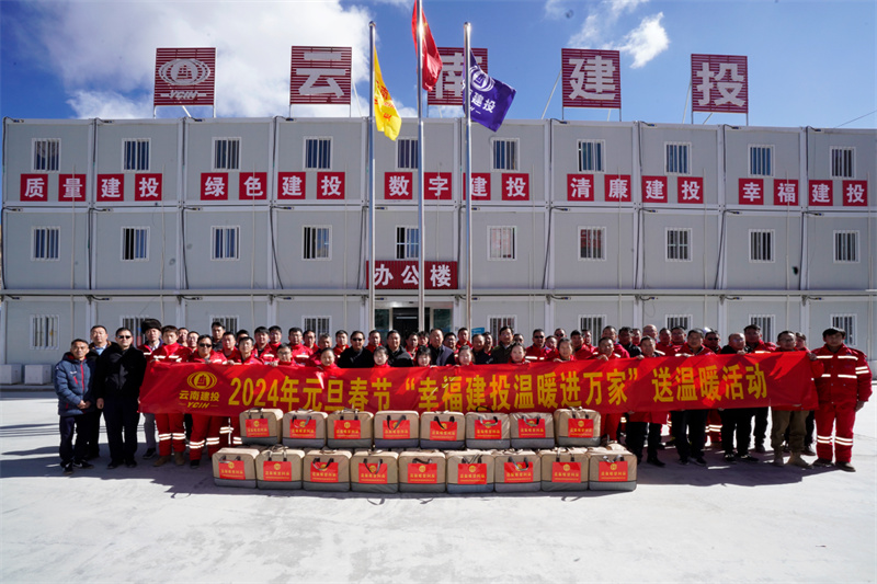 隨后,陳祖軍一行在安二司項目駐地開展2024年元旦春節“幸福建投溫暖進萬家”送溫暖活動,為西藏區域干部職工發放抗寒保暖慰問品,并代表集團黨委為大家送上新年祝福,切實將組織的關懷送到一線干部職工手中。