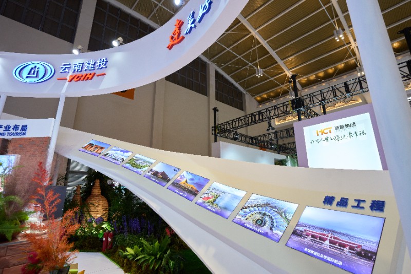 展廳中間區域以一條不斷延展的帶狀絲絳展示了集團高質量建設交付的國內外精品項目。“原來云南建投集團還有這么多酒店”,在酒店展廳面前,參觀者詳細了解集團旗下12家酒店的所在城市、項目特色等,咨詢酒店近期推出的優惠活動。在沐心谷國際康養度假村展臺前,參觀者對項目全維生態康養系統興趣濃厚,紛紛咨詢了解項目提倡的健康生活新理念。