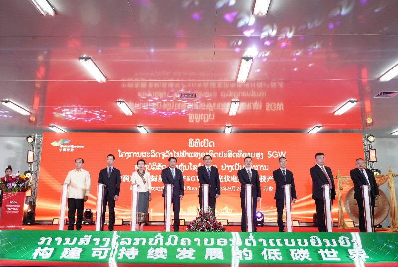 9月24日上午,中潤光能老撾基地一期5GW高效光伏電池項目投產儀式在老撾萬象賽色塔綜合開發區舉行。老撾總理宋賽·西潘敦、中國駐老撾大使館臨時代辦王暢、中國駐老撾大使館經濟商務參贊趙文宇、萬象市市長阿薩潘通·西潘敦、老撾總理府辦公廳主任阿倫賽·孫那拉出席活動。