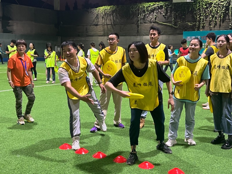 在飛盤比賽中,4個小組互相對抗,飛盤投擲、飛盤接力、打掉九宮格、打倒不倒翁……在一次次極限追逐和傳接中,大家團結協作、配合默契,飛盤旋轉不停,青年們奔跑、拼搶不停,揮灑的汗水伴隨著陣陣歡笑,彰顯出青春的熱情和光彩。