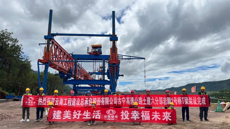 6月22日,隨著最后一片T梁精準落位,古寧高速巖腳1號橋T梁架設完成。