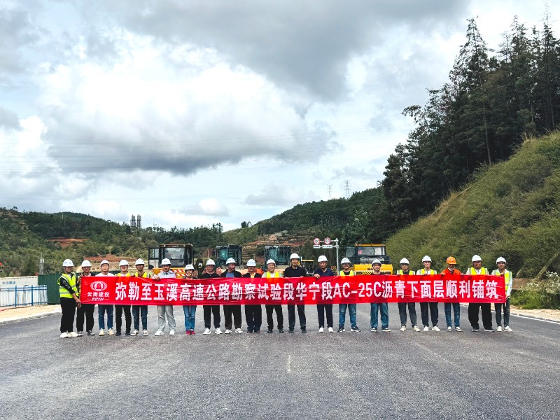 5月30日,彌玉高速華寧段項目瀝青下面層試驗段順利完成鋪筑,標志著項目路面施工邁入新階段。