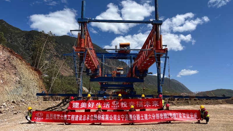 4月21日,總承包公司古寧高速土建六分部巖腳2號橋T梁架設圓滿完成。