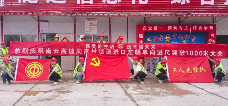 4月24日,南云高速公路周家村隧道進(jìn)口左幅單向掘進(jìn)順利突破1000米大關(guān)。