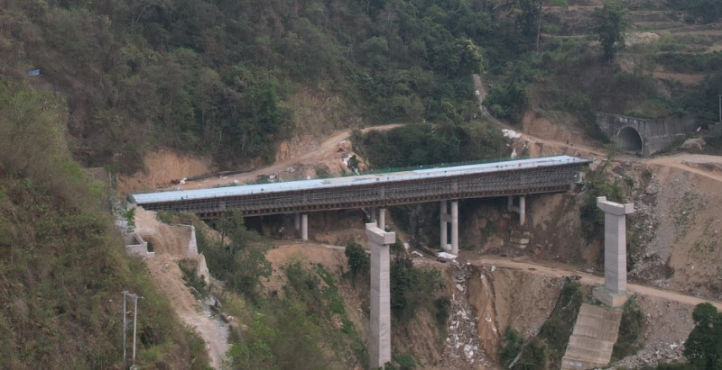 3月14日,元綠高速公路項目紅莫3號大橋左幅現澆箱梁完成澆筑。