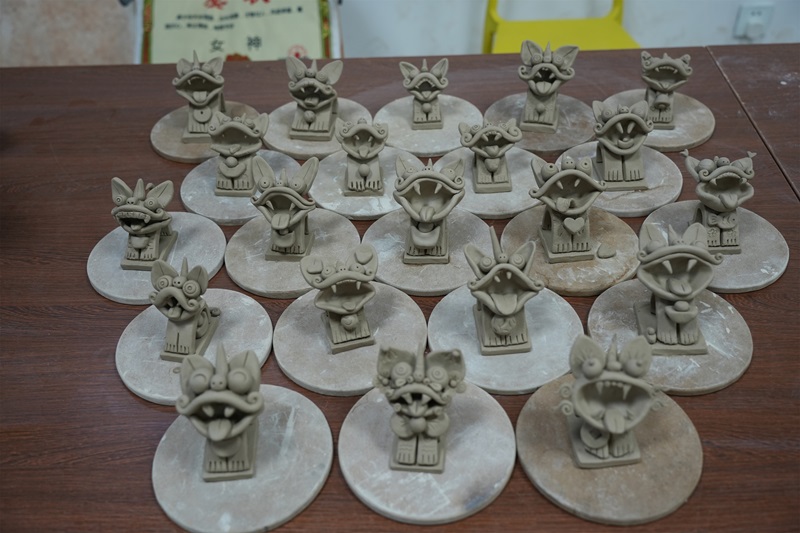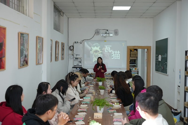活動開始,非遺傳承人鐘老師向到場給團員青年介紹了“瓦貓”的的歷史淵源、文化內涵以及制作工藝。她通過對瓦貓起源民間故事的生動講述,點出了瓦貓蘊含的鎮宅辟邪、求財納福的寓意,說明了屋頂的瓦貓對曾經云南文化的重要意義。隨著現代化的發展,瓦貓慢慢演變為用作裝飾的現代化工藝品,并在2005年入選昆明市級非遺文化。鐘老師詳細講解了瓦貓的制作流程,包括選泥、制坯、晾曬、燒制等環節,并現場展示了精美的瓦貓作品。深入了解“瓦貓”的歷史后,全體團員青年鐘老師的帶領和指導下,紛紛開始進行泥塑瓦貓的制作。從泥球塑形、瓦貓底座壓制到軀干設計、頭部設計,大家步調統一,一個個形狀各異的“瓦貓”泥塑逐漸成型。團員青年紛紛表示,通過親身實踐,不僅加深了對“瓦貓”文化的理解,也體會到了非遺傳承人的匠心獨運。