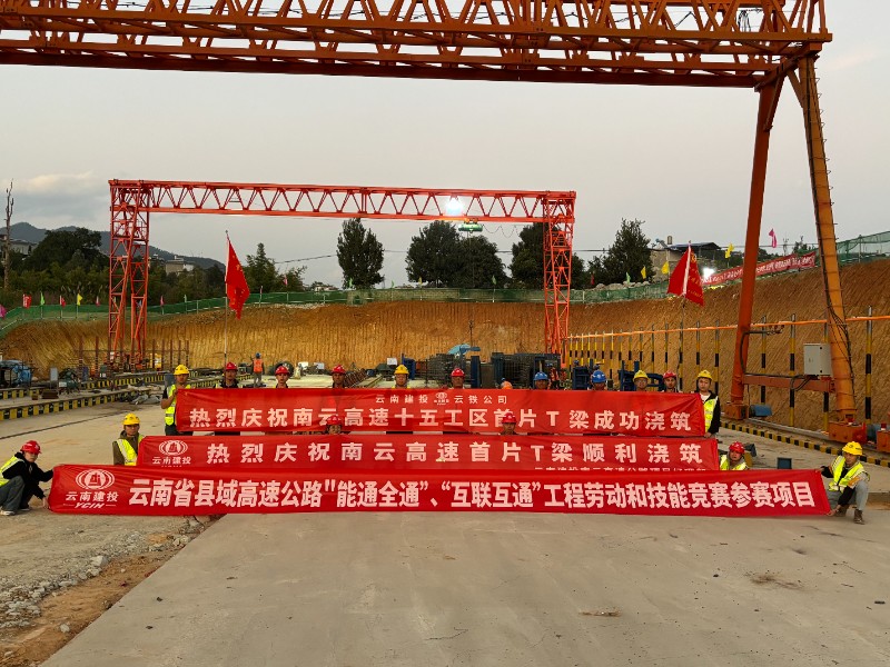 12月10日,南云高速公路項目首片預制T梁在土建十五工區(qū)順利澆筑完成,標志著南云高速橋梁上部結構施工工作全面展開。