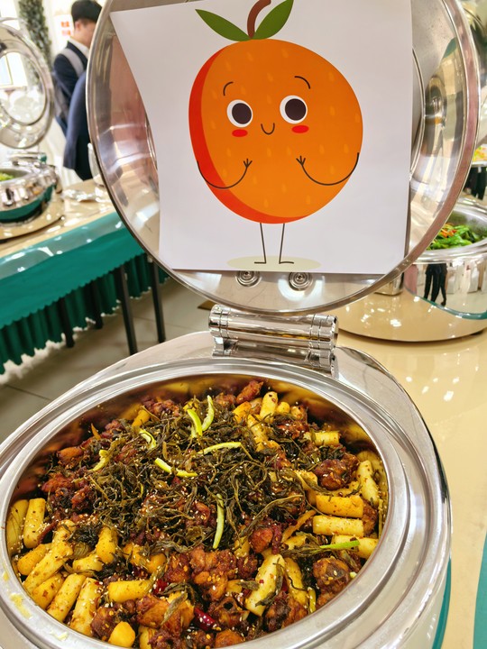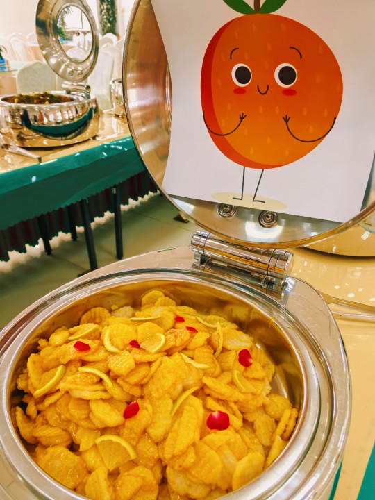 進入公司食堂,仿佛步入一片橙色海洋,橙子打造的各類菜肴、點心、飲品以及用橙子做出的各類造型,引得員工們一陣陣驚呼:“食堂搞得這些個新鮮玩意兒,倒真是喜聞樂見!”招牌菜“橙味魚丸”選用新鮮橙子搭配秘制調料,與肉質鮮嫩的魚丸一同烹飪,橙子的清新果香加上魚丸的鮮美,令口感更加豐富層次,甜而不膩。“橙香山藥”則將橙子的酸甜與高營養的山藥完美結合,清新爽口,酸甜美味。“橙皮茶香雞”則是選用優質橙皮與茶葉、烤雞一起翻炒,清新的橙皮和嫩滑的雞肉一搭,刷爆員工們的味蕾體驗。“橙汁溜冬瓜”則把平時寡淡的冬瓜浸入橙香,呈現別具一格的風味。