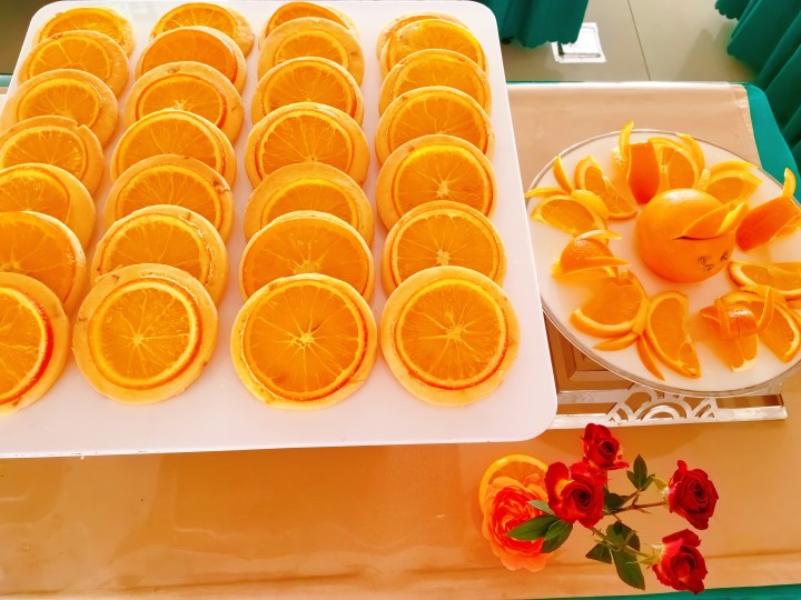 再看點心,也是精心準備好的“橙式”點心。各類的西式小點心和橙子造型,把橙子的用處發揮的淋漓盡致。為員工們奉上一場視覺與味覺的雙重盛宴。據公司工作人員介紹,取名“橙”風破浪,不僅是食堂為增添員工幸福感而舉辦的一場創新活動,更是意在鼓勵員工在工作生活中遇到困難時要沖破一切阻礙,迎難而上,保持自己的清新與活力,勇敢的實現自己的夢想與目標。