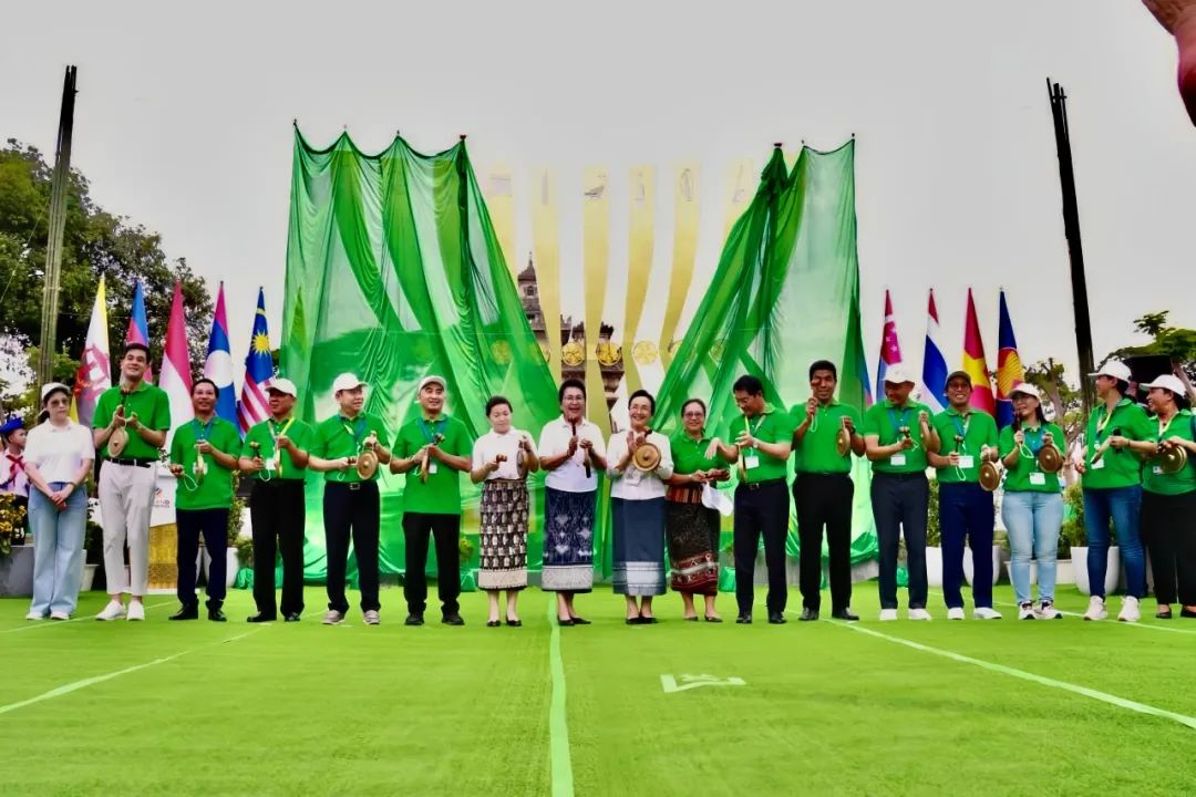今年是老撾主辦第44屆和第45屆東盟峰會之年,也是老撾旅游年,現樹立在凱旋門廣場公園的金色東盟logo,是集團在老發展27年以來為老撾國家添置的又一新地標。金色東盟標志雕塑,刻有東盟各國首都標志和民族樂器,形似老撾國花占芭花,是東盟國家積極按照東盟政策加強合作的體現,也是東盟各國深厚友誼的展現。
