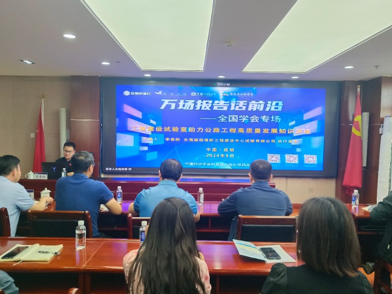“2024年全國科普公路知識普及宣傳活動”采用圖文并茂的形式,生動講述了公路發展簡述、工程材料質量檢測與控制、工程實體檢測與監測、運營期公路養護檢測及監測、公路檢測發展展望五個方面內容。全體參會人到云南建投博昕工程建設中心試驗有限公司進行實地觀摩,直觀了解試驗室的設備配置、先進檢測技術、工作流程和實驗操作,增強參訓人員對試驗室在工程質量控制中關鍵作用的認識。