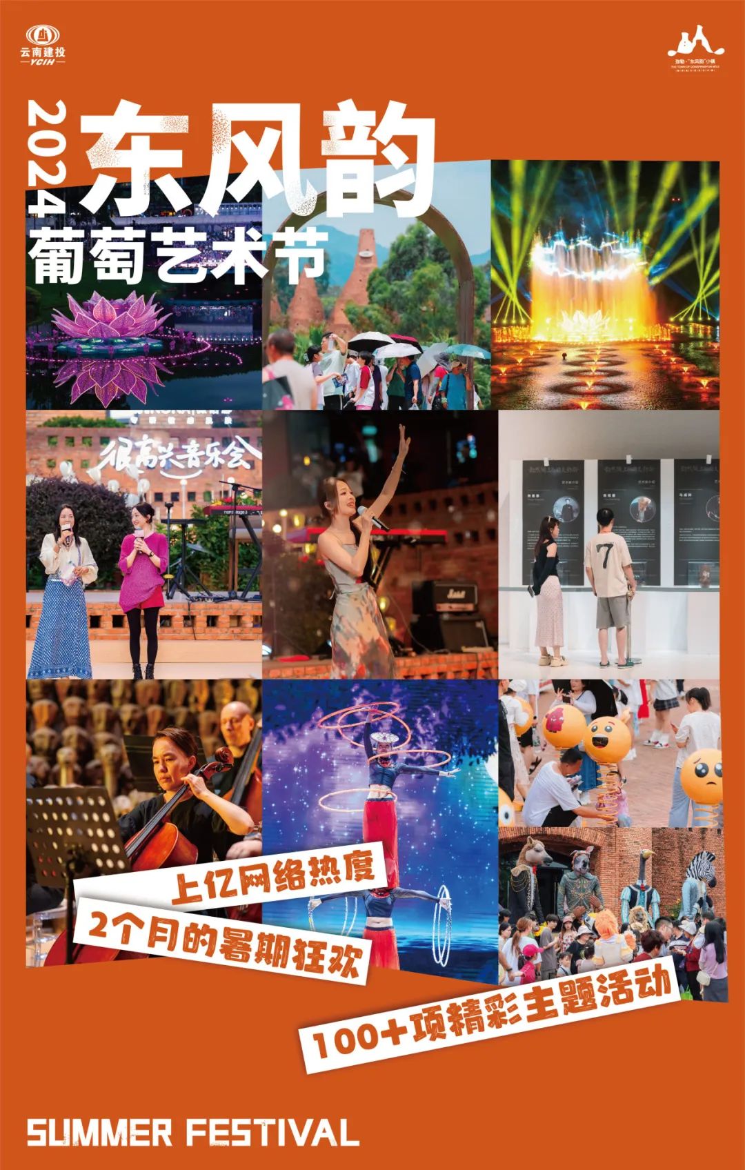 東風韻葡萄藝術節為親子家庭建立了一座溜娃烏托邦,打造了屬于孩子們的童心盛宴。《奇幻動物城》兒童偶劇、偶劇巡游狂歡、《時光派對》雜技兒童劇、民族之聲展演、心情創意集市·······歡樂席卷整個暑期。