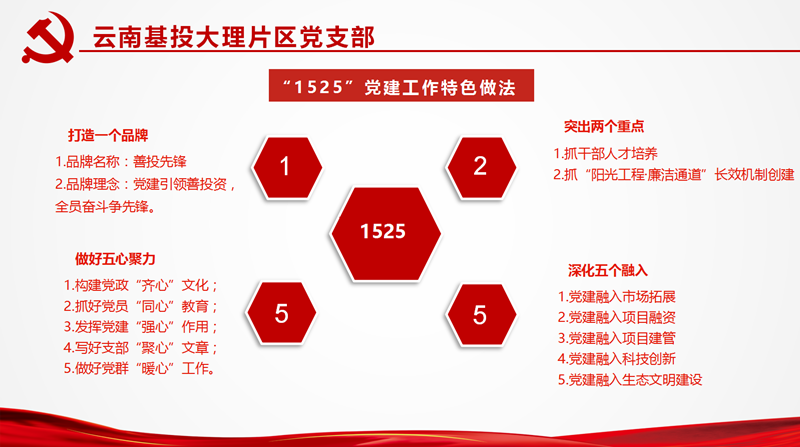 基投公司大理片區(qū)黨支部通過持續(xù)抓實(shí)“1525”黨建工作特色做法和深化打造“善投先鋒”黨建品牌,黨組織的戰(zhàn)斗堡壘作用和黨員的先鋒模范作用得到有效發(fā)揮,黨建引領(lǐng)改革發(fā)展成效凸顯,市場拓展、項(xiàng)目融資、項(xiàng)目建管、科技創(chuàng)新、生態(tài)文明建設(shè)和干部培養(yǎng)等工作均取得長足進(jìn)展,切實(shí)把黨的工作優(yōu)勢轉(zhuǎn)化為片區(qū)的競爭優(yōu)勢、創(chuàng)新優(yōu)勢、發(fā)展優(yōu)勢,不斷提高效益、增強(qiáng)競爭實(shí)力。基投公司大理片區(qū)黨支部將持續(xù)探索創(chuàng)新黨建工作與生產(chǎn)經(jīng)營深度融合新途徑,推動(dòng)黨建工作與企業(yè)發(fā)展同頻共振、同向發(fā)力、雙融互促,為實(shí)現(xiàn)區(qū)域內(nèi)涵式高質(zhì)量發(fā)展注入新動(dòng)能。