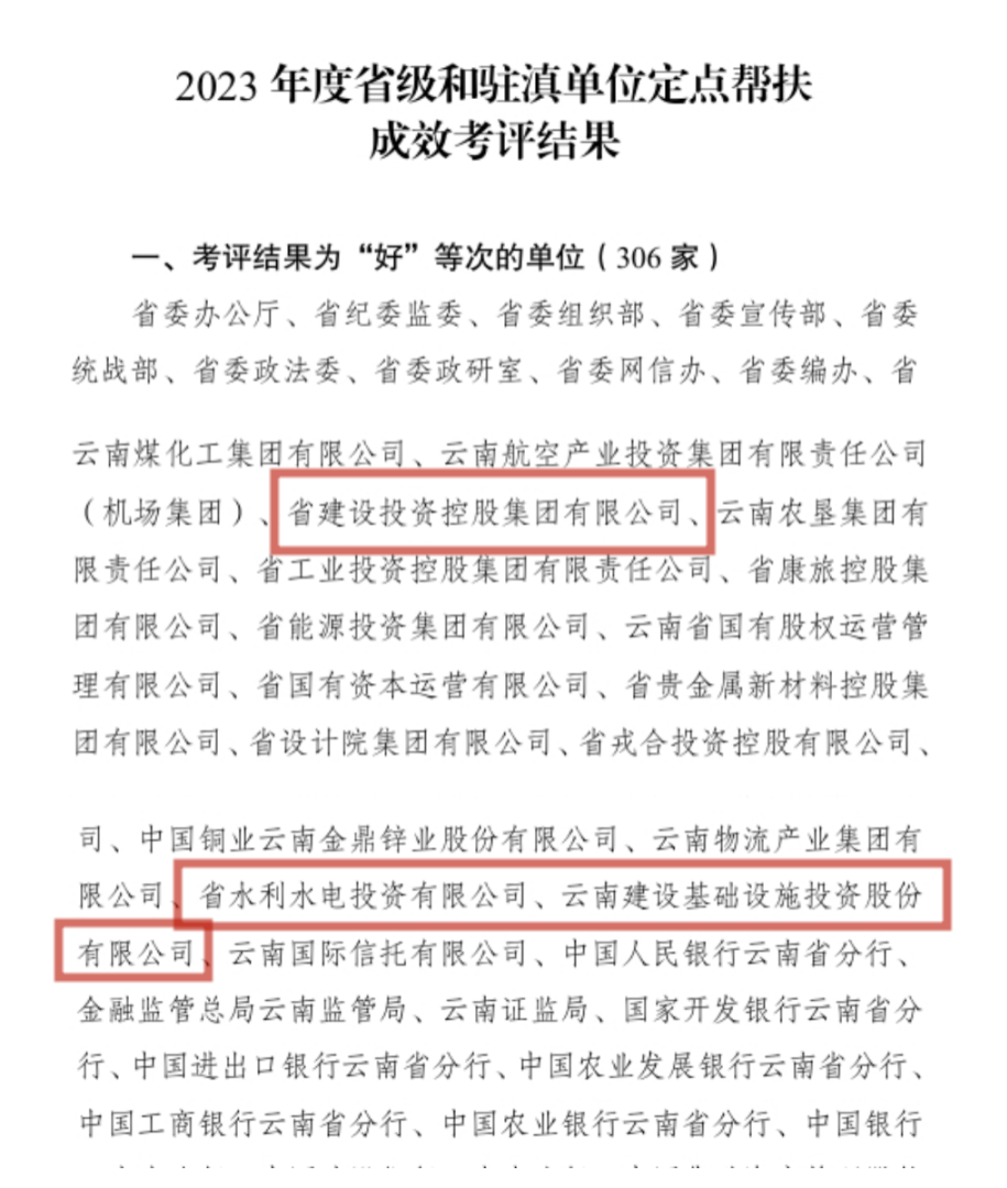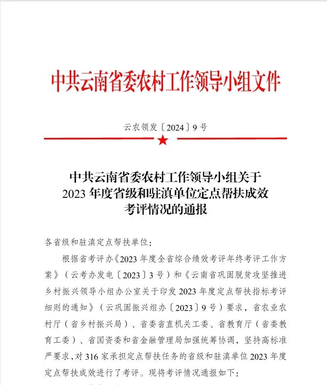 近日,省委農村工作領導小組公布《2023年度省級和駐滇單位定點幫扶成效考評結果》,集團及基投公司、水投公司通過考評,連續8年獲最高等次評價.