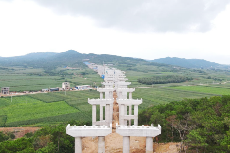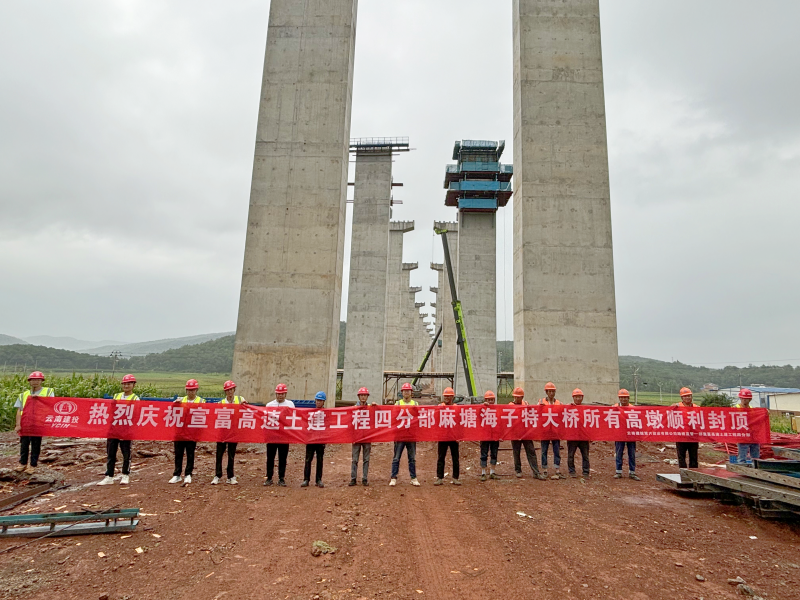麻塘海子特大橋為跨越低洼谷地、現狀鄉村道路及鐵路而設,全長1291.08米,共計圓柱墩22顆、薄壁空心墩23顆,最大墩高46.5米。自2023年10月5日麻塘海子特大橋第一顆高墩封頂以來,項目團隊堅持目標引領,倒排工期,將工作責任層層壓實,經歷297個日夜的辛苦工作,實現了麻塘海子特大橋高墩全部封頂。