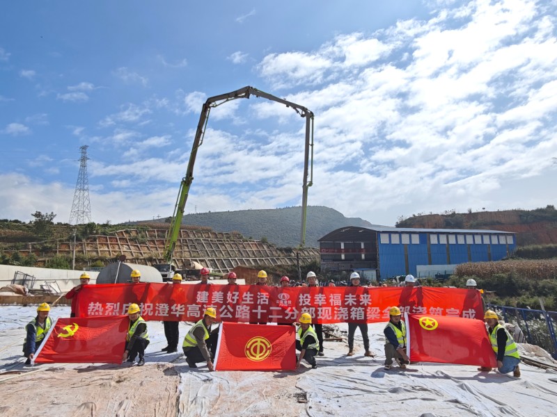 10月25日,澄江至華寧高速公路項目華寧南樞紐H匝道橋現澆箱梁順利完成澆筑,十二分部現澆箱梁工程圓滿收官。十二分部范圍內現澆箱梁共有9聯,包含預應力混凝土現澆箱梁4聯、普通混凝土箱梁5聯,混凝土設計總方量6100余立方米,現澆支架最高處達25米,多為高支模施工。