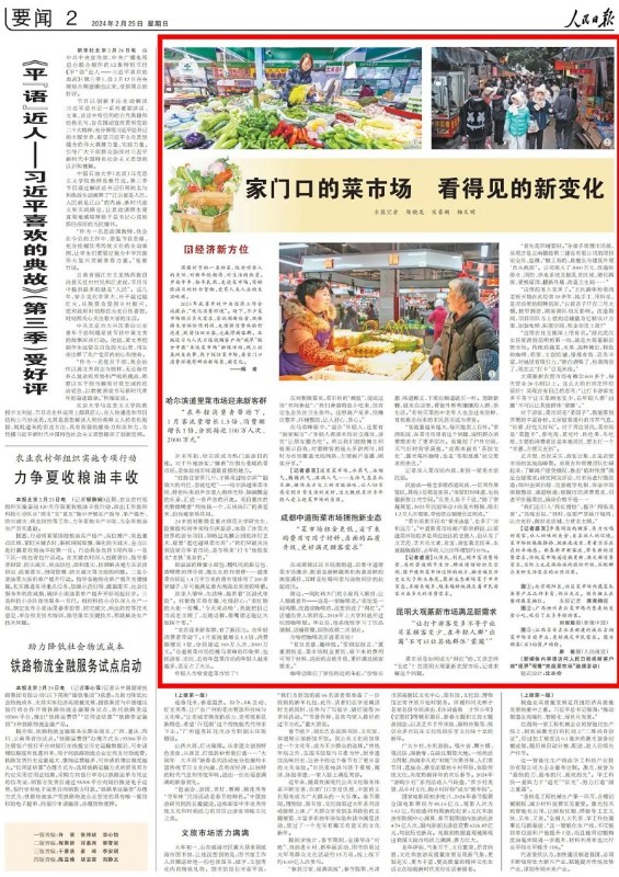 2月25日,《人民日報》要聞版刊文,點贊云南昆明大觀篆新市場滿足消費新需求。