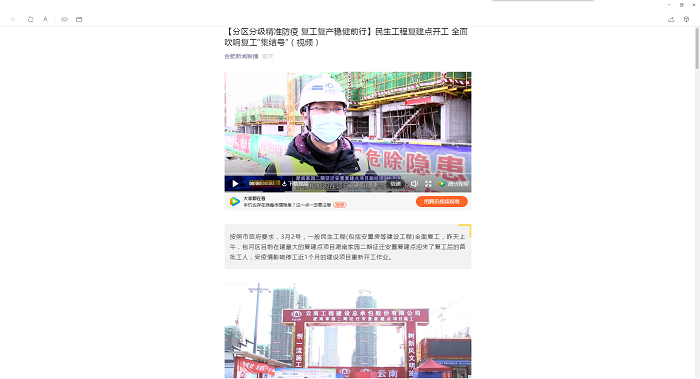 ?多家媒體報道總承包公司省外項目復工復產