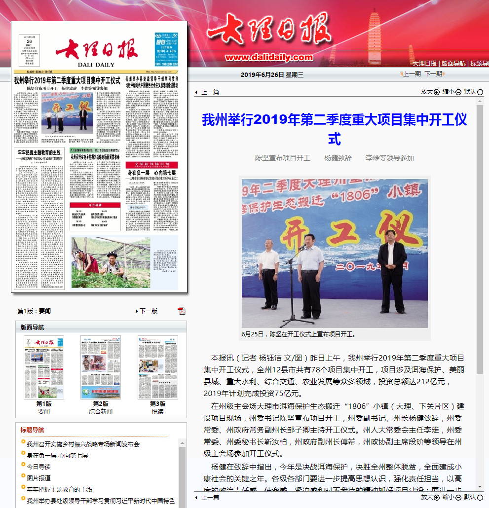 http://news.cctv.com/2019/06/25/VIDE2oLsYUUc9QhHwB0fO5fl190625.shtml 大理日報: