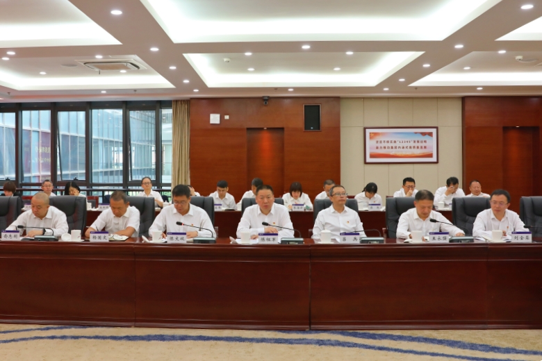 省委主題教育第二十二巡回指導組組長單文、副組長張郭宏一行到會指導,會議由集團公司黨委書記、董事長陳祖軍主持。