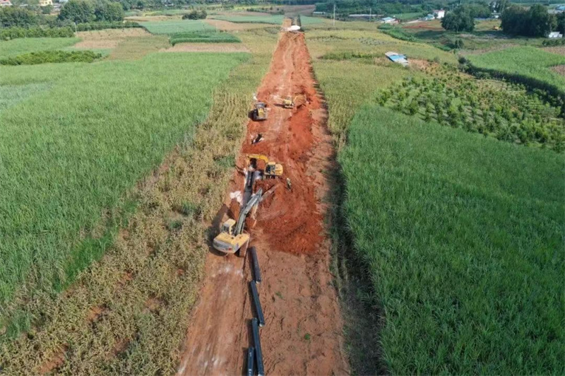 當(dāng)時正值雨季,加之征地拆遷工作推進(jìn)困難,嚴(yán)重制約施工進(jìn)度。項(xiàng)目經(jīng)理部不等不靠,立即啟動第一條管道——另仂水庫延伸段至芒款支管的施工。