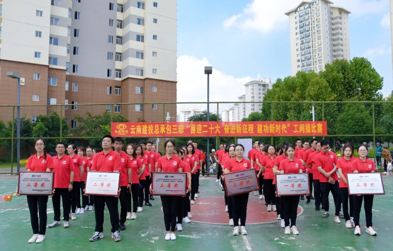 8月10日上午,總承包三部舉辦“喜迎二十大 奮進新征程 建功新時代”工間操比賽,來自本部16個部門的72名干部職工組成6支隊伍參賽。