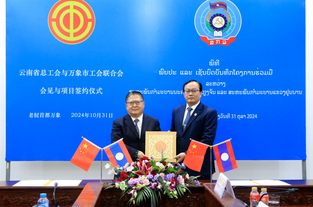 10月31日,云南省總工會與老撾萬象市工會聯合會在老撾首都萬象簽署開展《中國云南省總工會和老撾首都萬象市工會聯合會關于開展“一帶一路”共建項目示范性勞動和技能競賽框架協議》,以推動“一帶一路”項目共建,提升職工勞動技能。這是云南省總工會和萬象市工會聯合會之間,首個兩地工會聯動、兩國職工參與的競賽。